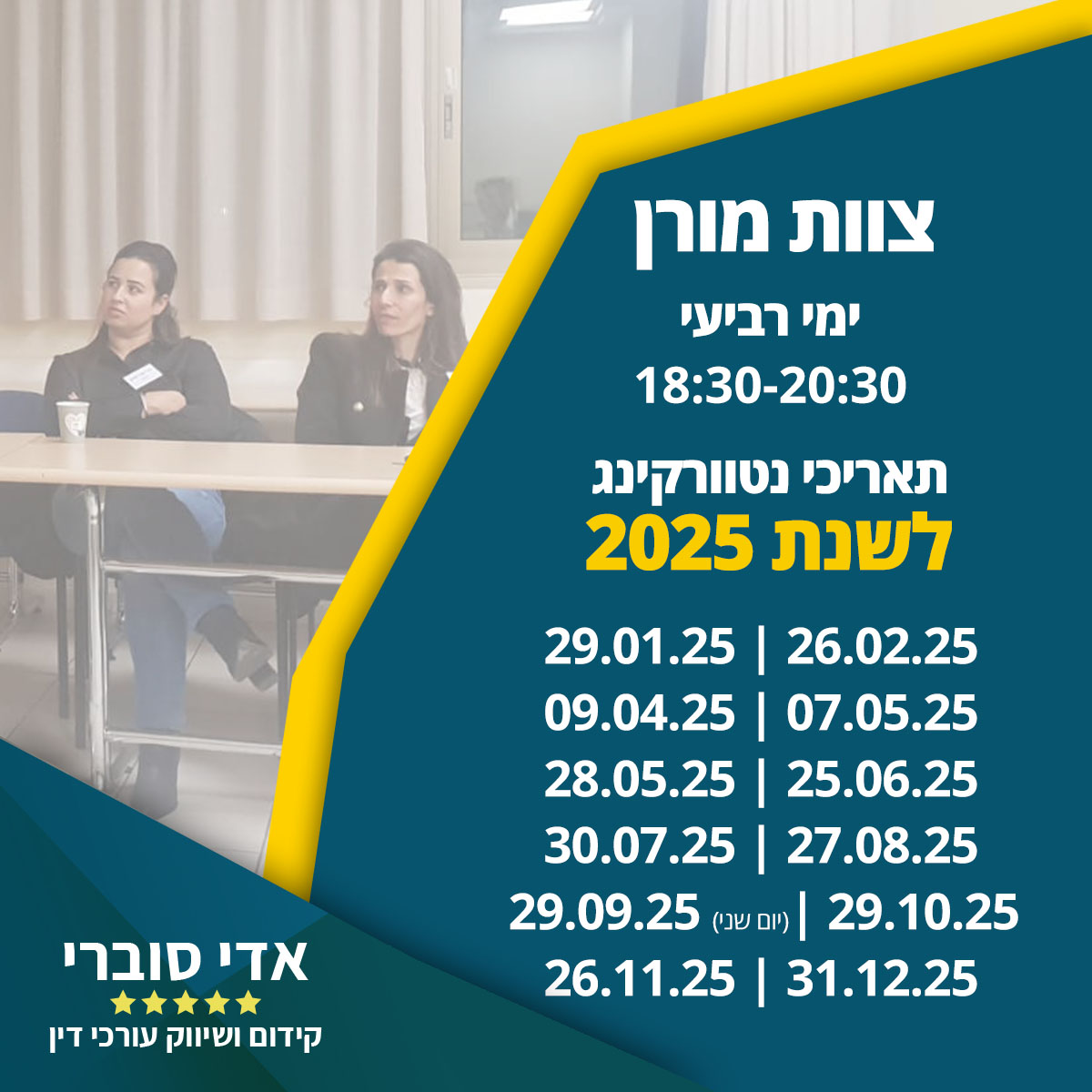 אנו בצוות מורן מהווים אחת מארבע קבוצות הנטוורקינג המובילות לעורכי דין בישראל.